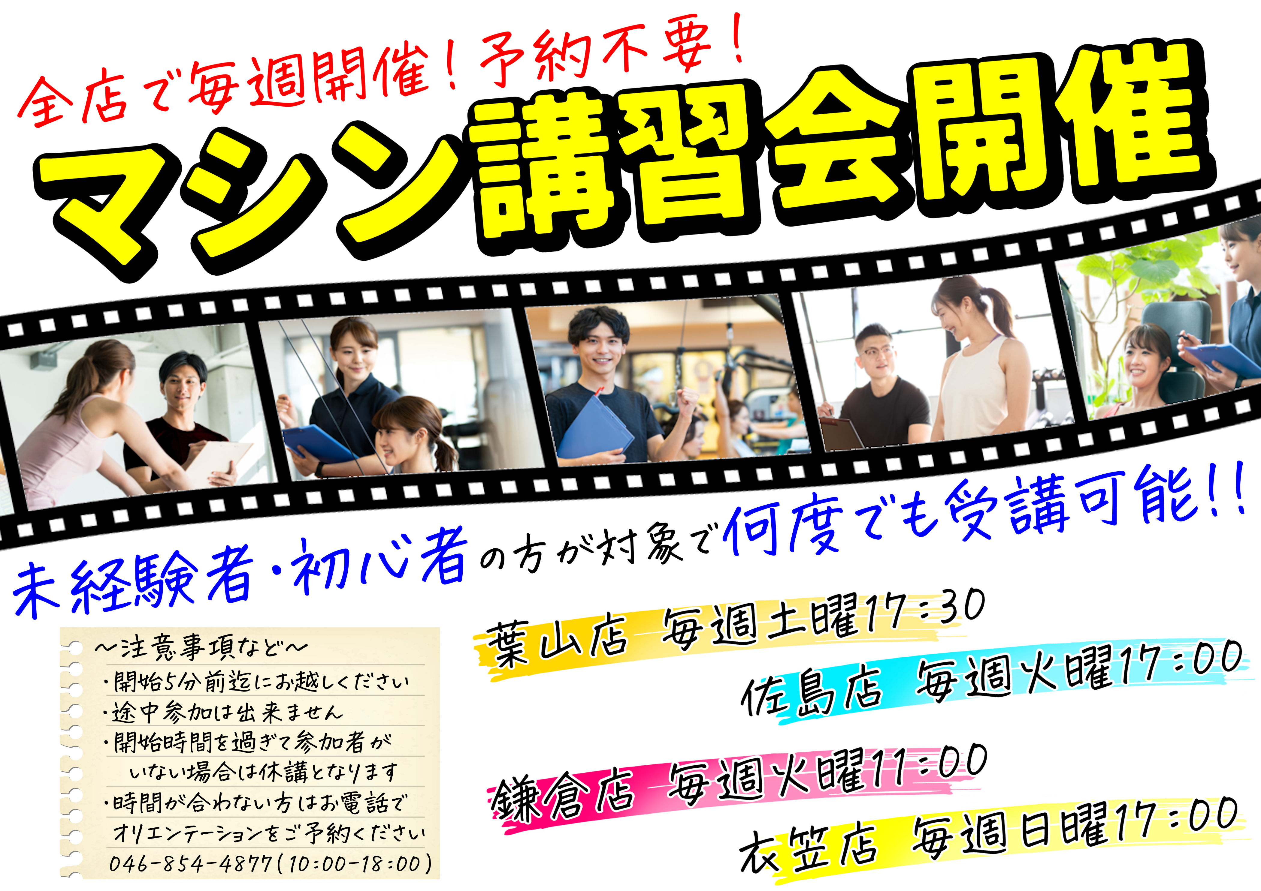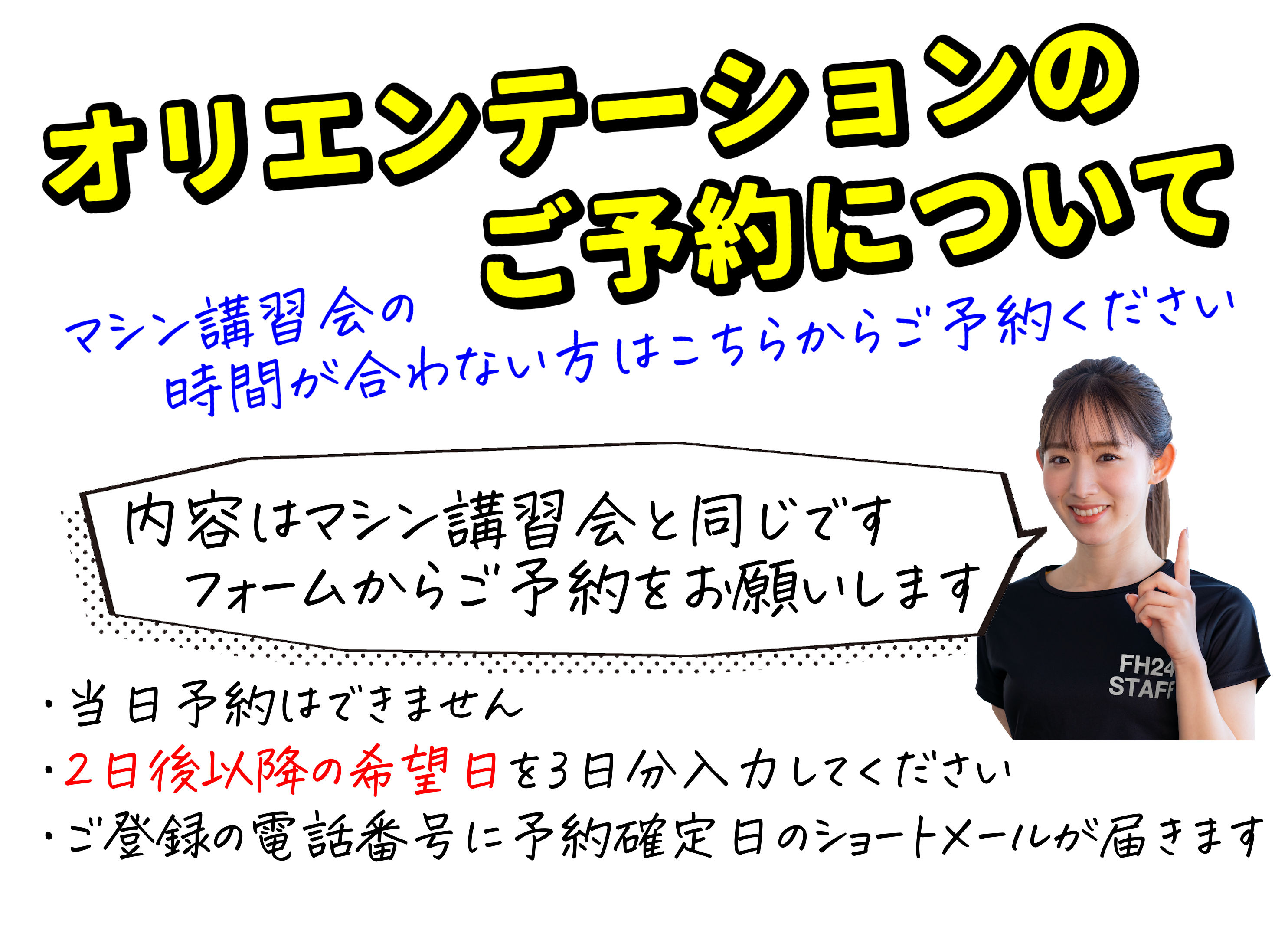 - こちらは初回限定でお1人様1回となります。2回目以降の指導をご希望の方は有料パーソナルかマシン講習会をご利用ください